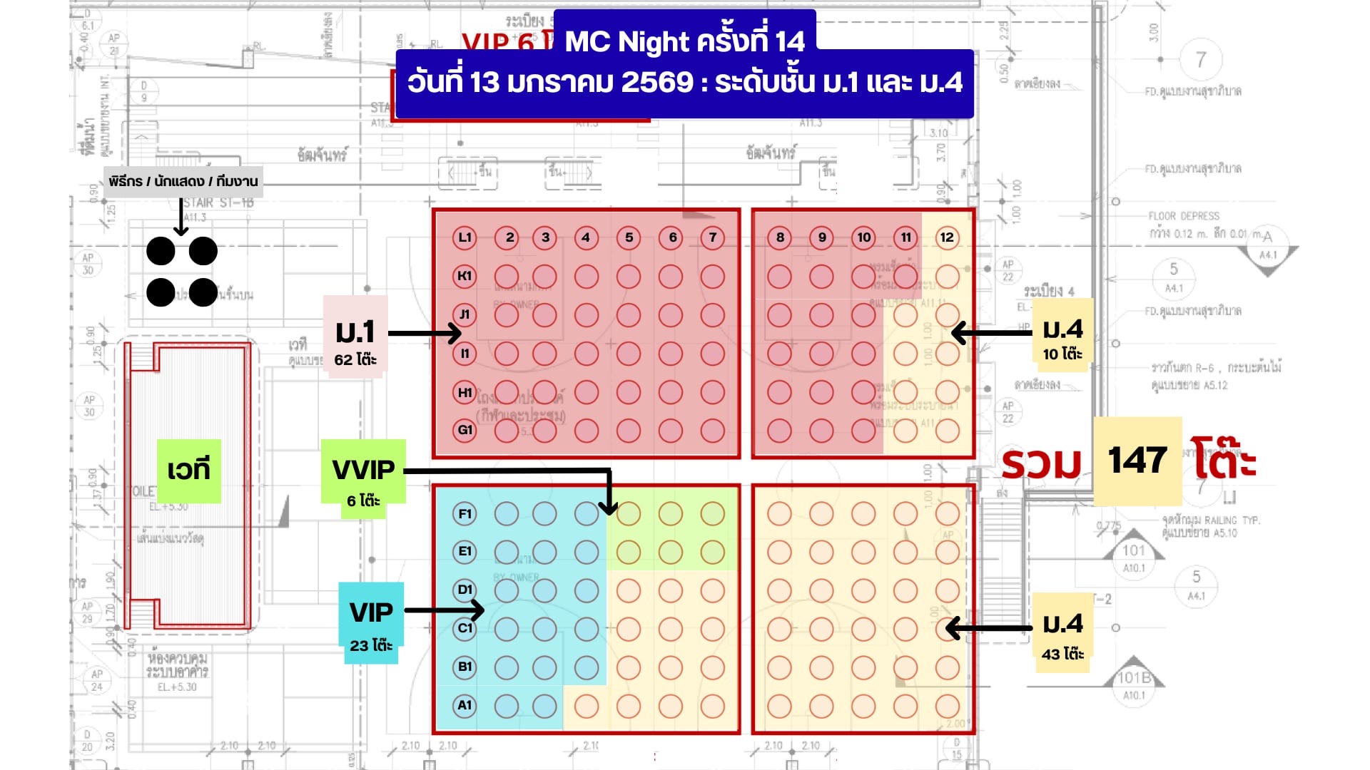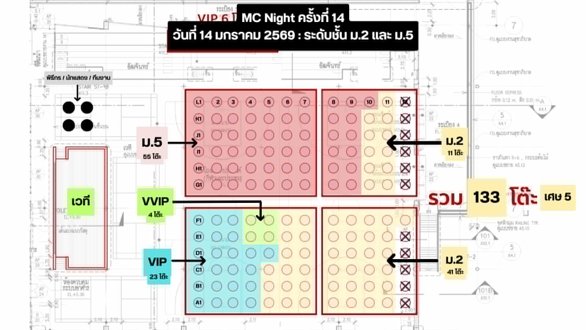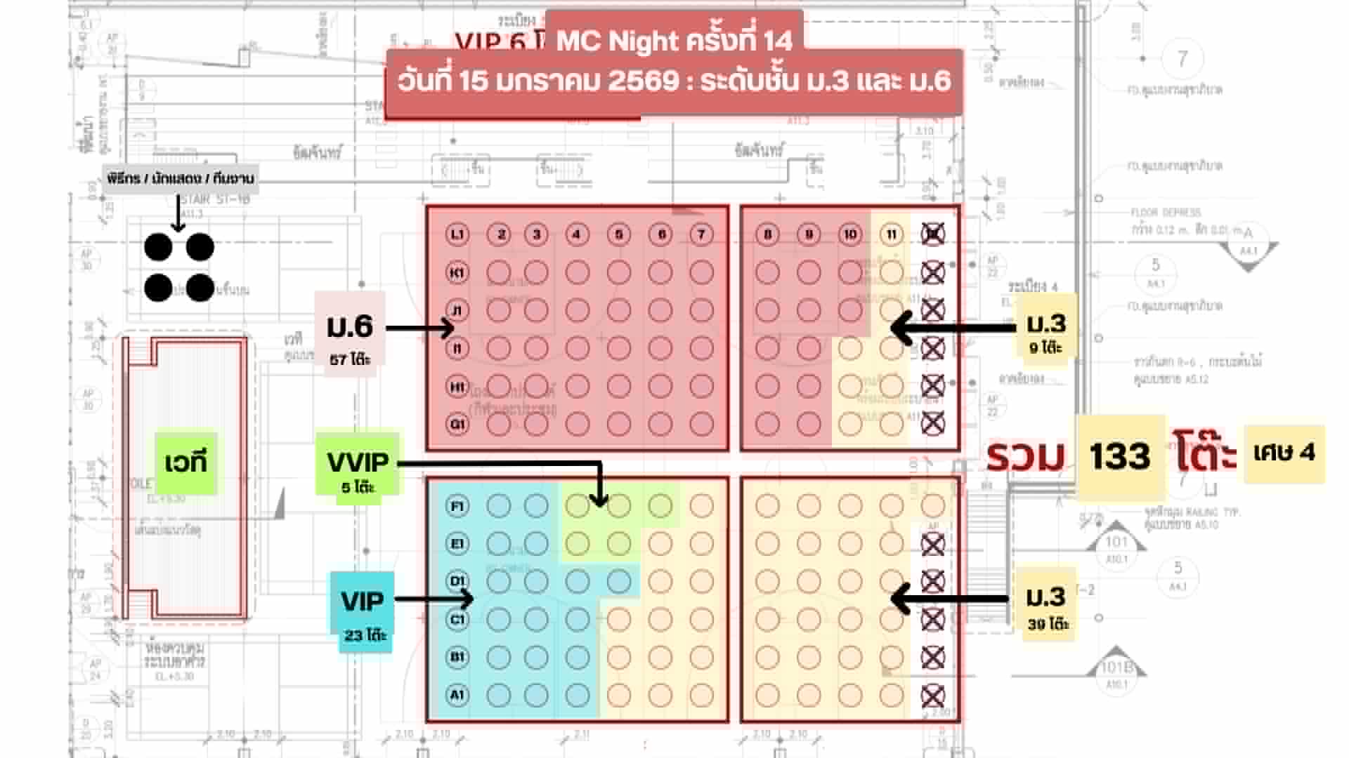 จองที่นั่งโต๊ะจีน การแสดงของนักเรียน ★ 13 มกราคม 2569 (ม.1 และ ม.4) | ★ 14 มกราคม 2569 (ม.2 และ ม.5) | ★ 15 มกราคม 2569 (ม.3 และ ม.6)